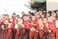 Based on his vision of the neccessity of unity of religion with contemporary secular culture, Thrangu Rinpoche strongly requests support for his school- going monks, in particular for the monks at Namo Buddha. He points out that the more monks get a secular as well as the traditional monastic education, the more they will be able to understand all sentient beings, and help others develop an understanding of Dharma, which will benefit the wider community.