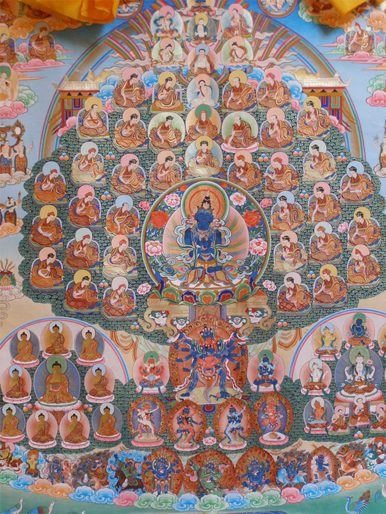 The Kagyu (practice) lineage of Tibetan Buddhism traces it roots back to Vajradhara Buddha whose teachings were brought to Tibet from India by Marpa the Great Translator.